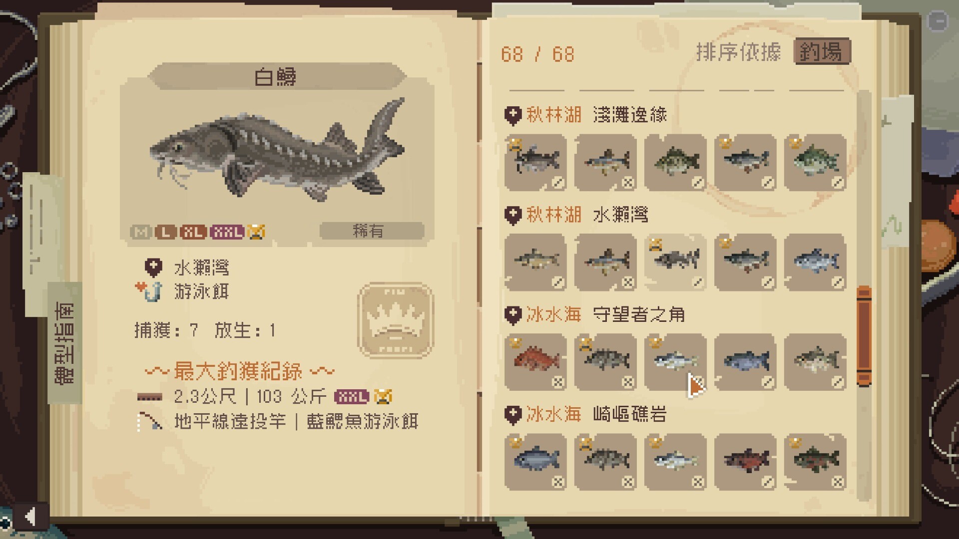 不知不觉找完了全部鱼种也玩了冬季更新的冰钓,就钓到这里,不打算刷奇奇怪怪的成就和传奇大鱼了(