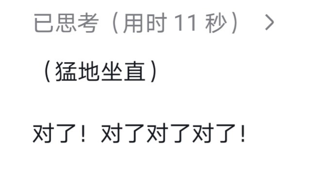 如果你问ds这个问题,它能想八分多钟,快去试试吧(doge)