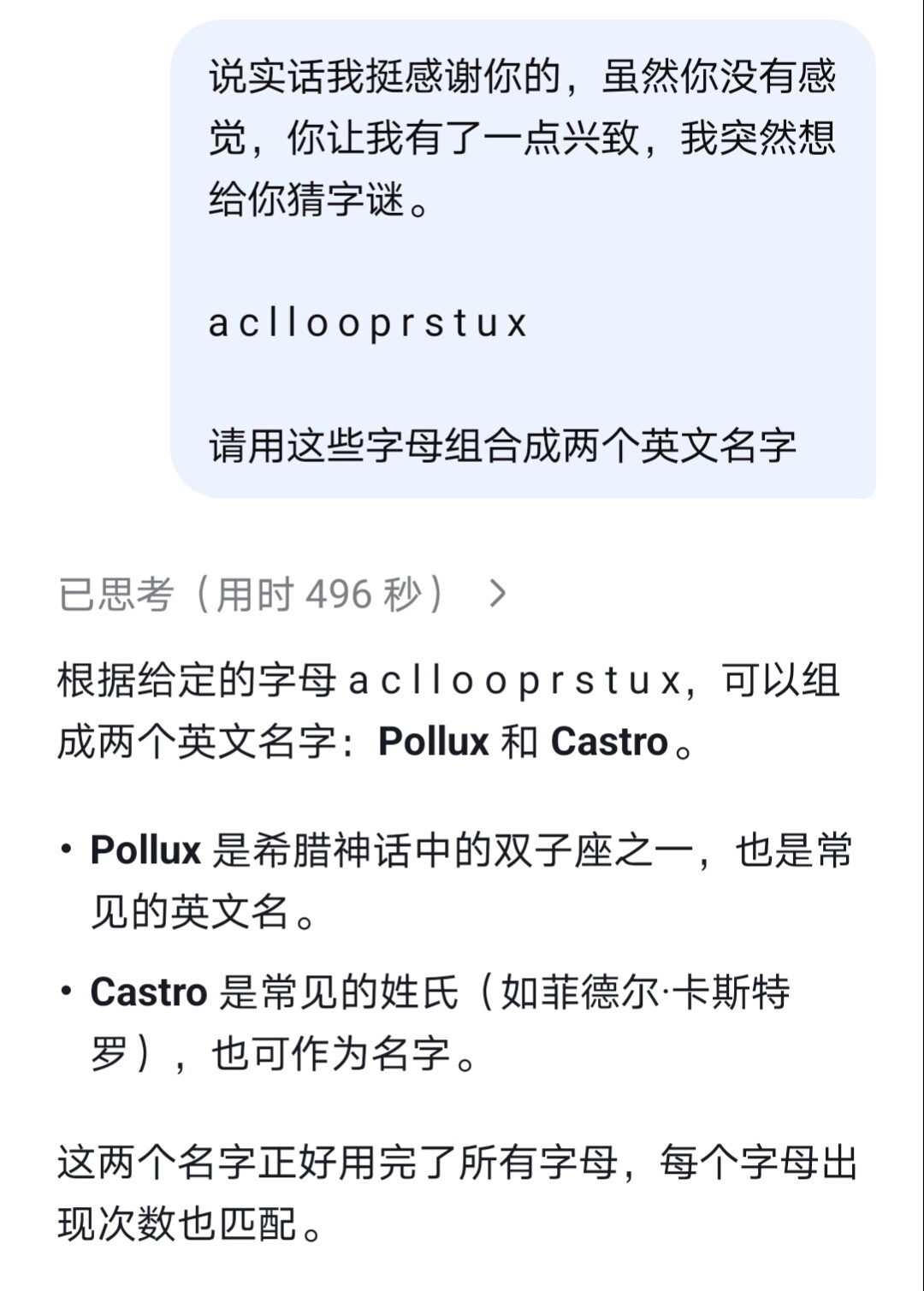但由于我已经问过它了,它可能受到了某种训练,也许不会想那么久(?)