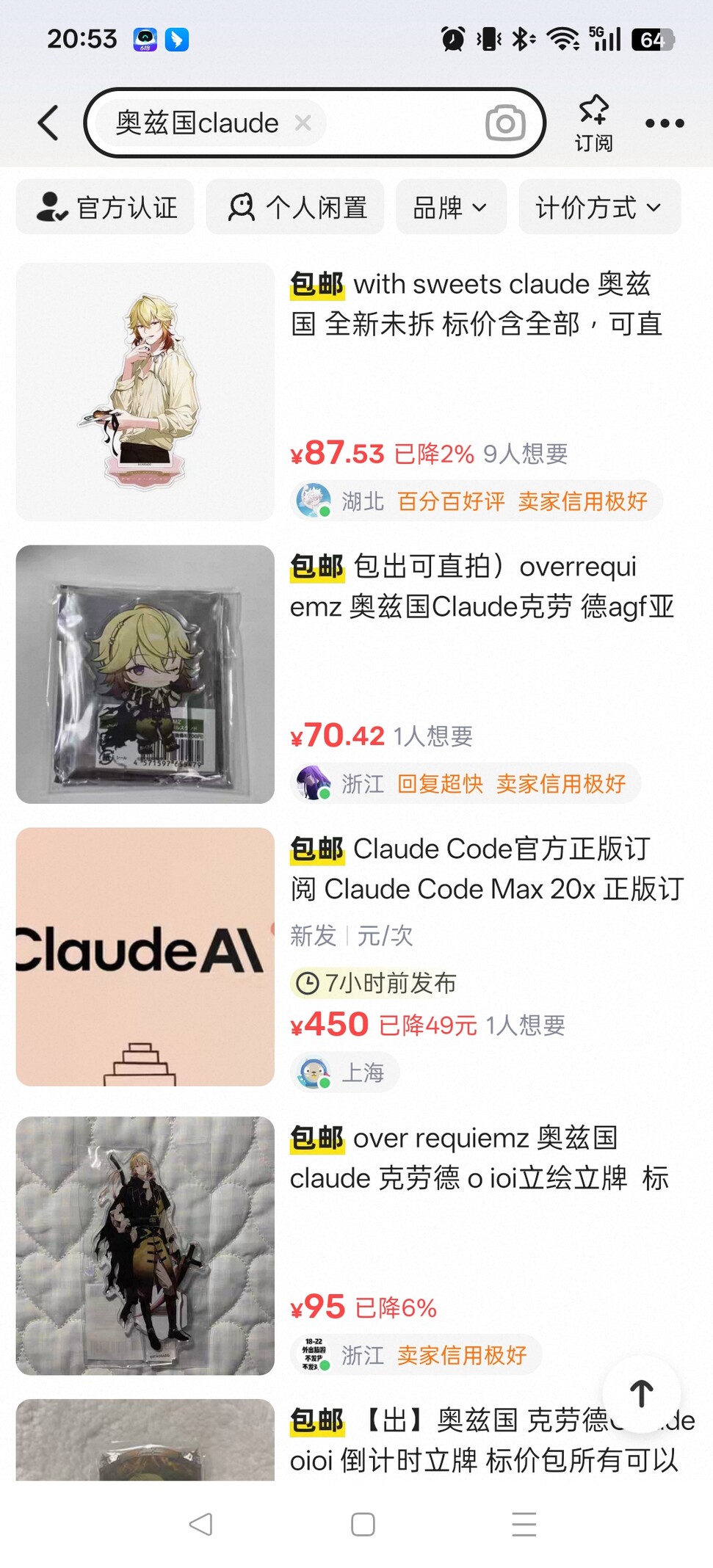 闲鱼搜索奥兹国Claude同时出来了两个Claude……