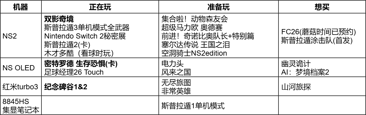 喷2(1h):月初继续日常浅玩了二代真格,鱼虎模式升到了C段,后来因为每周要打任天堂世锦赛,懒得换卡带,就中断了。