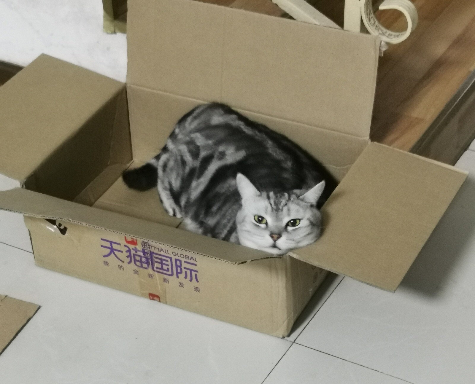 天冷了,开始揣手手坚持了一会还是选择跳进箱子里