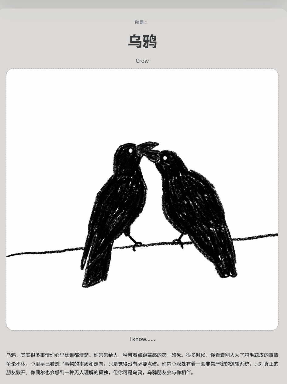 鸟bti好玩(主要是我测出网红鸟了。)https://xiaohao934.github.io/birdtest/