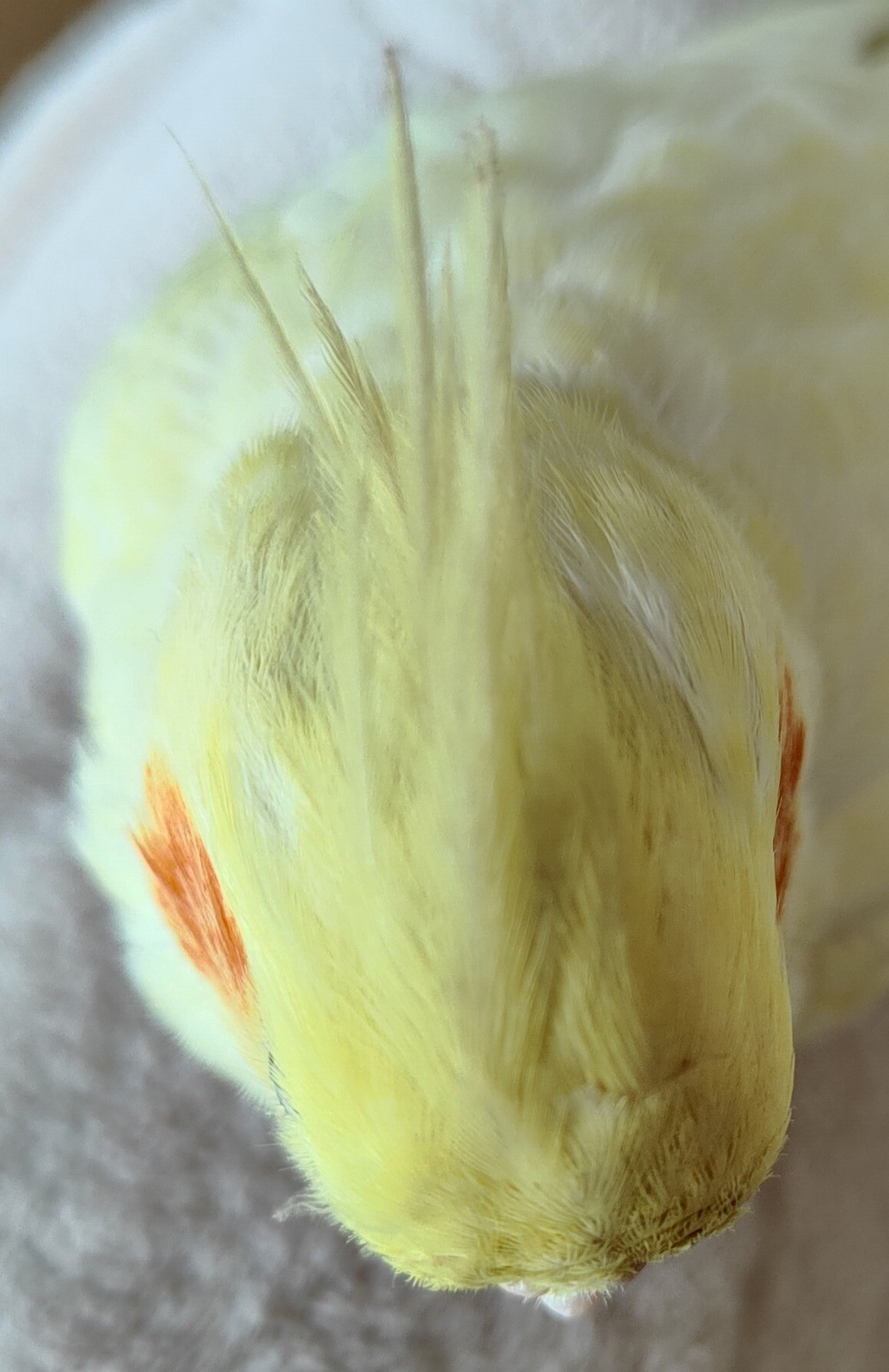 给鸡买的是100w的保温灯,每天晚上睡觉她就在底下窝着,今天捞起来一看冠毛被烤焦了一截……#年轻人的第一款陆行鸟