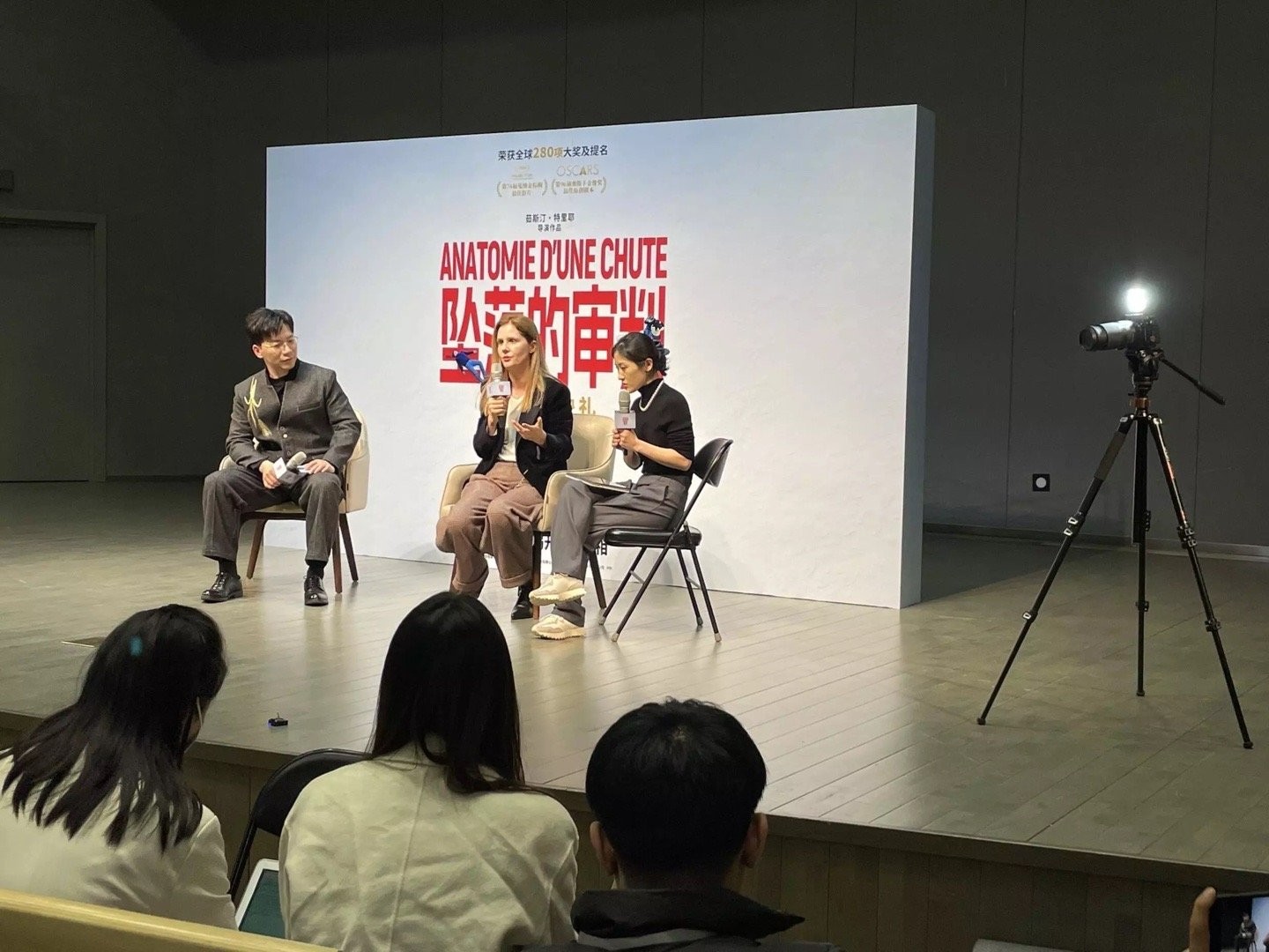 “我们当然期待这类电影和一般的法国电影,”江枫渔火说,因为这是来自电影的发明者卢米埃尔的国度的影片,又在影迷们梦寐以求的戛纳电影节上获得了最高奖项,”这位对戈达尔、夏布洛尔和卡拉克斯了如指掌的电影硕士继续说道,“我真的很期待看到获得金棕榈奖的《坠落的审判》,特别是能与导演互动。”