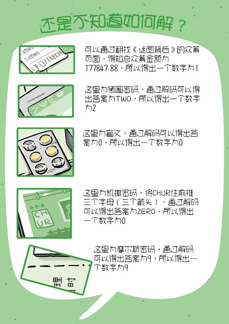 除了数字顺序没有头绪之外,其他难度很小,更何况有提示小抄。结局癫癫的,很好玩,用时接近半小时。整本『谜图背后behind』用时约4小时多,挺短的短篇,但也算挺不错的了。