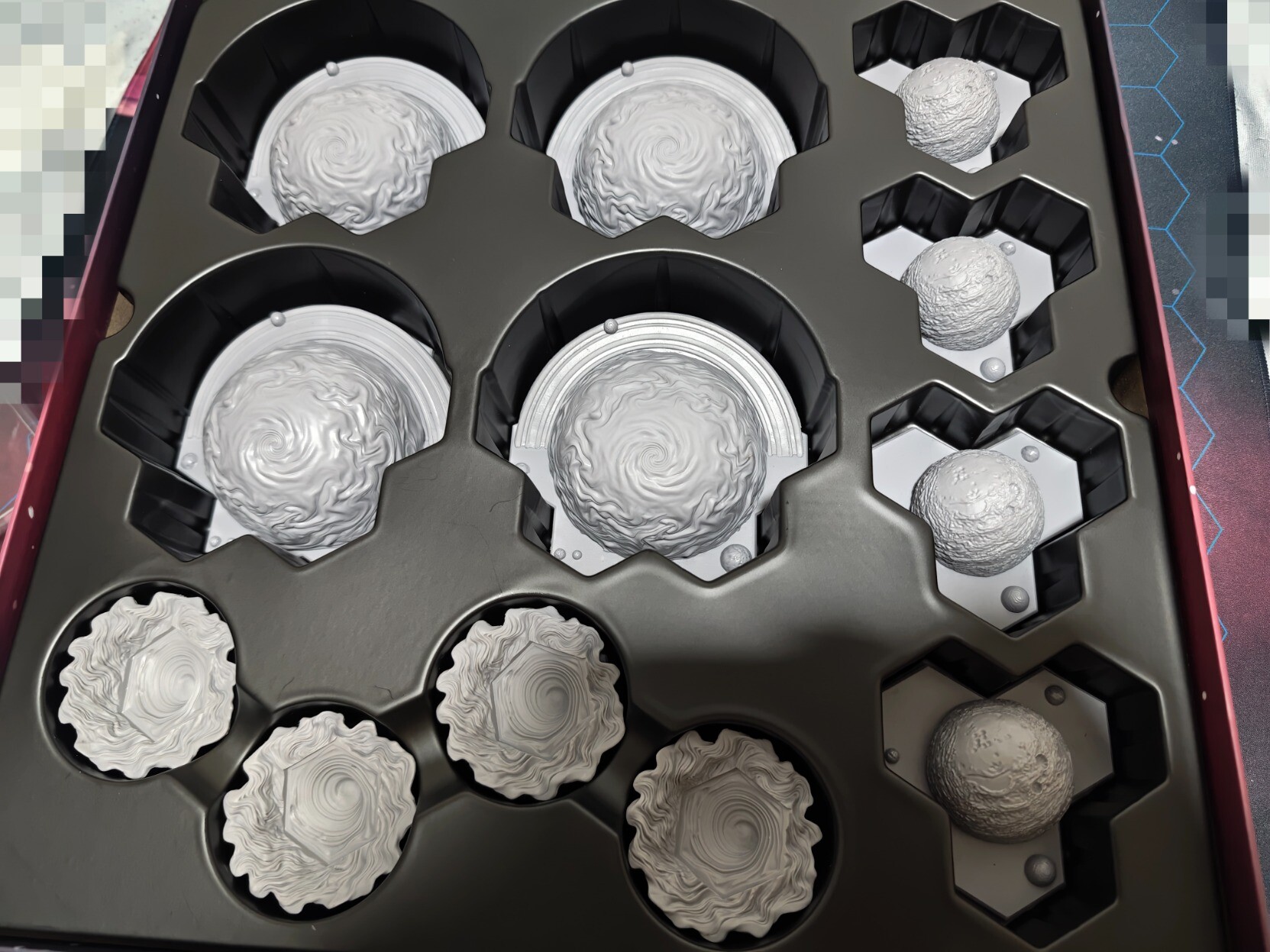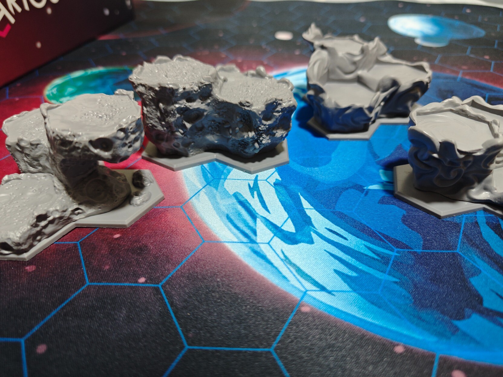 地形盒巨大,比我笔记本电脑还大一圈,打开瞬间真的很震撼,超大的行星模型以及黑洞,就是盒子上写的nebula和asteroids不知道在哪,数量也有点对不上……