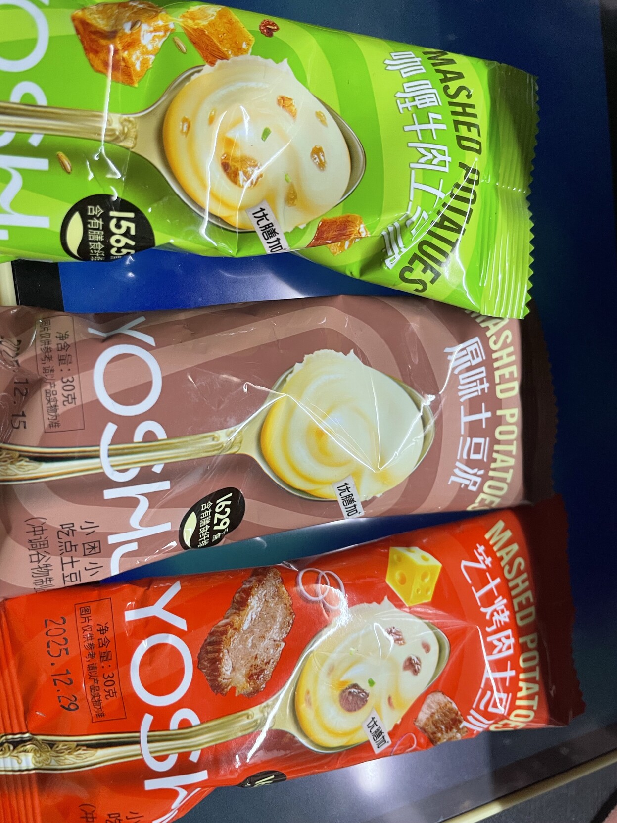 原味的難吃,吃起來像嚼橡皮泥。我本身就對咖喱味不感冒,所以我還是不喜歡。芝士烤肉土豆味道很不錯!吃了一包我覺得味道還是淡淡的。所以第二包我自己摻了一勺半的奶粉+致死量的胡椒。獲得了一份十分濃郁的土豆泥……!#King口開食