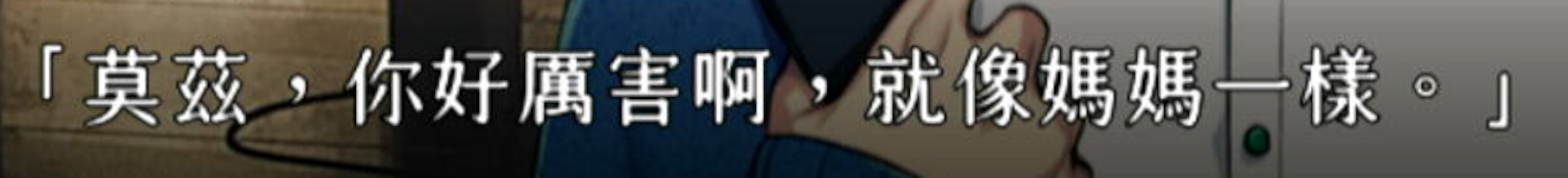 别的没什么好说的,在这个游戏确实很难有恋爱的氛围传递给我,就算是最爱的老妈我都觉得莫名其妙,看其他人我全是旁观视角了,但这条线因为有一些擦边拉扯倒是暧昧氛围还挺足的,大家也算同生共死了!