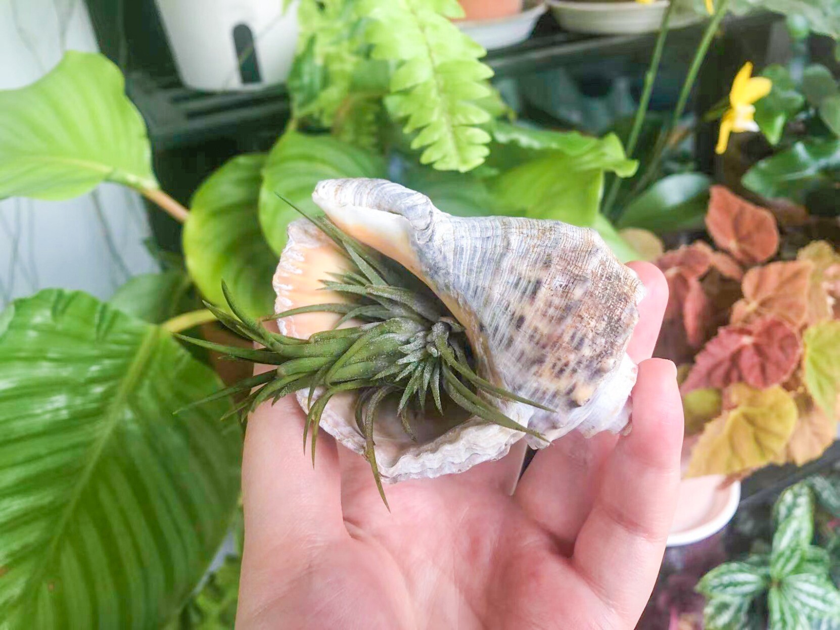 在外面吃饭时候捡的螺壳。家里的小空气凤梨塞进去正合适。