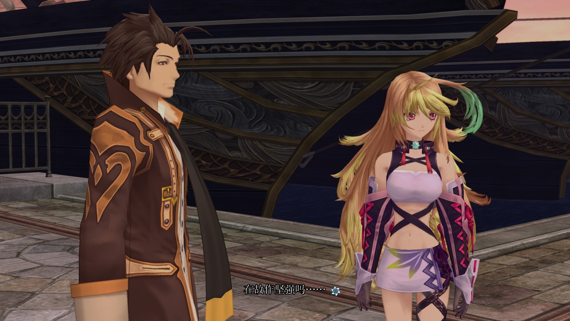 總之找哥哥對話的時候那個T字人bug並沒有發生在我這裡,太好了。聊完之後女孩子拖著蜜拉去逛街男的留原地商量大事(呃)感覺好詭異【結果馬上哥就被一箭弄死了,擦汗,劇情急轉直下羅嚴大顯神威