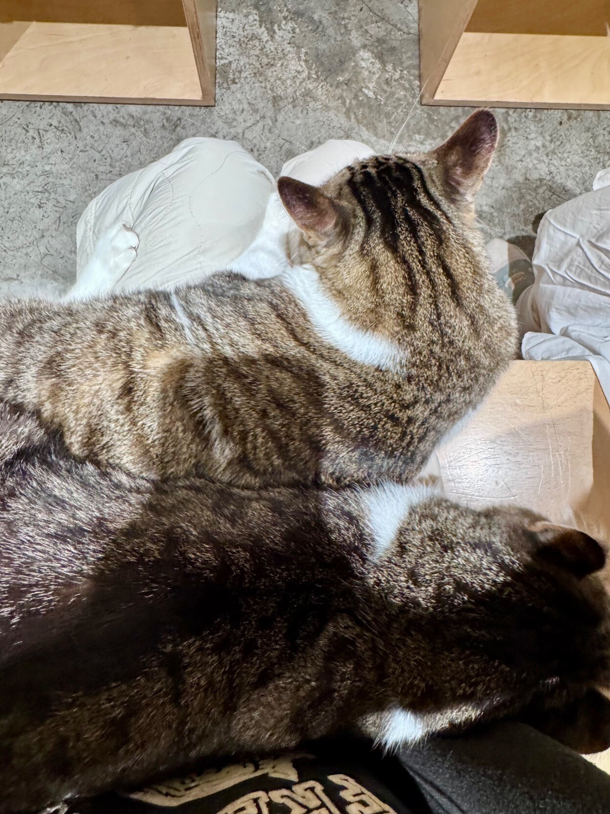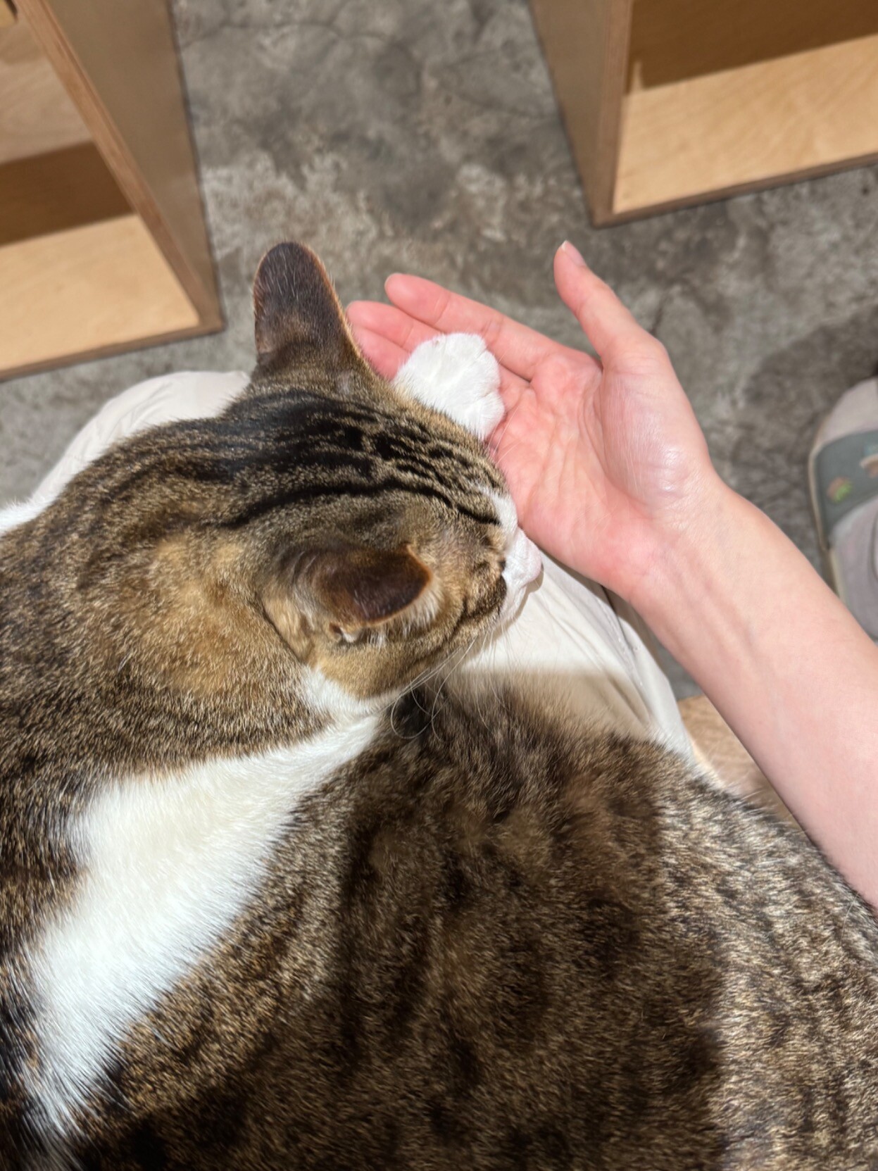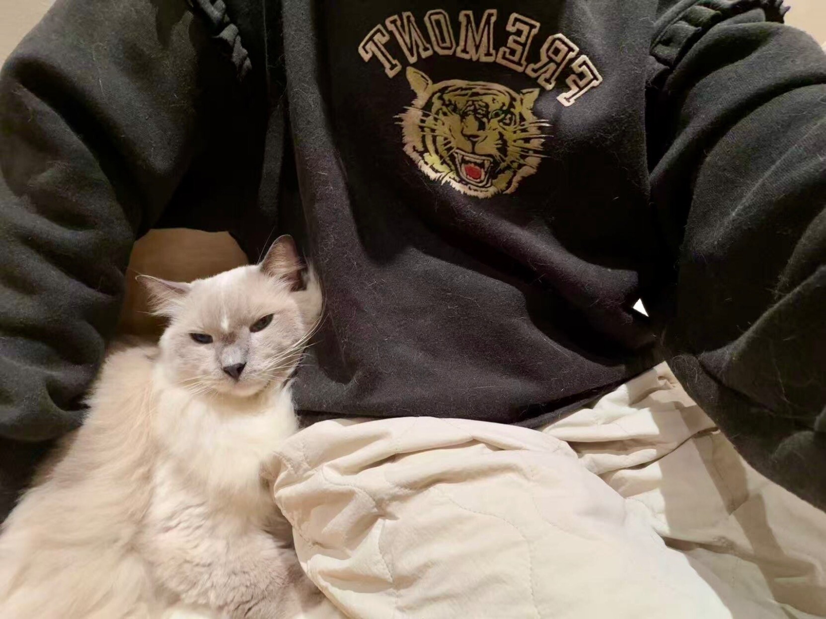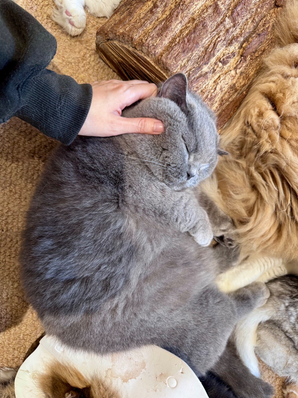 还吸猫了1. 矜持的布偶 没好意思坐上来 只是挨着2. 矮脚英短 很可爱.... 小短腿像小圆木棍3. 幸福....的重量.......4. 手手