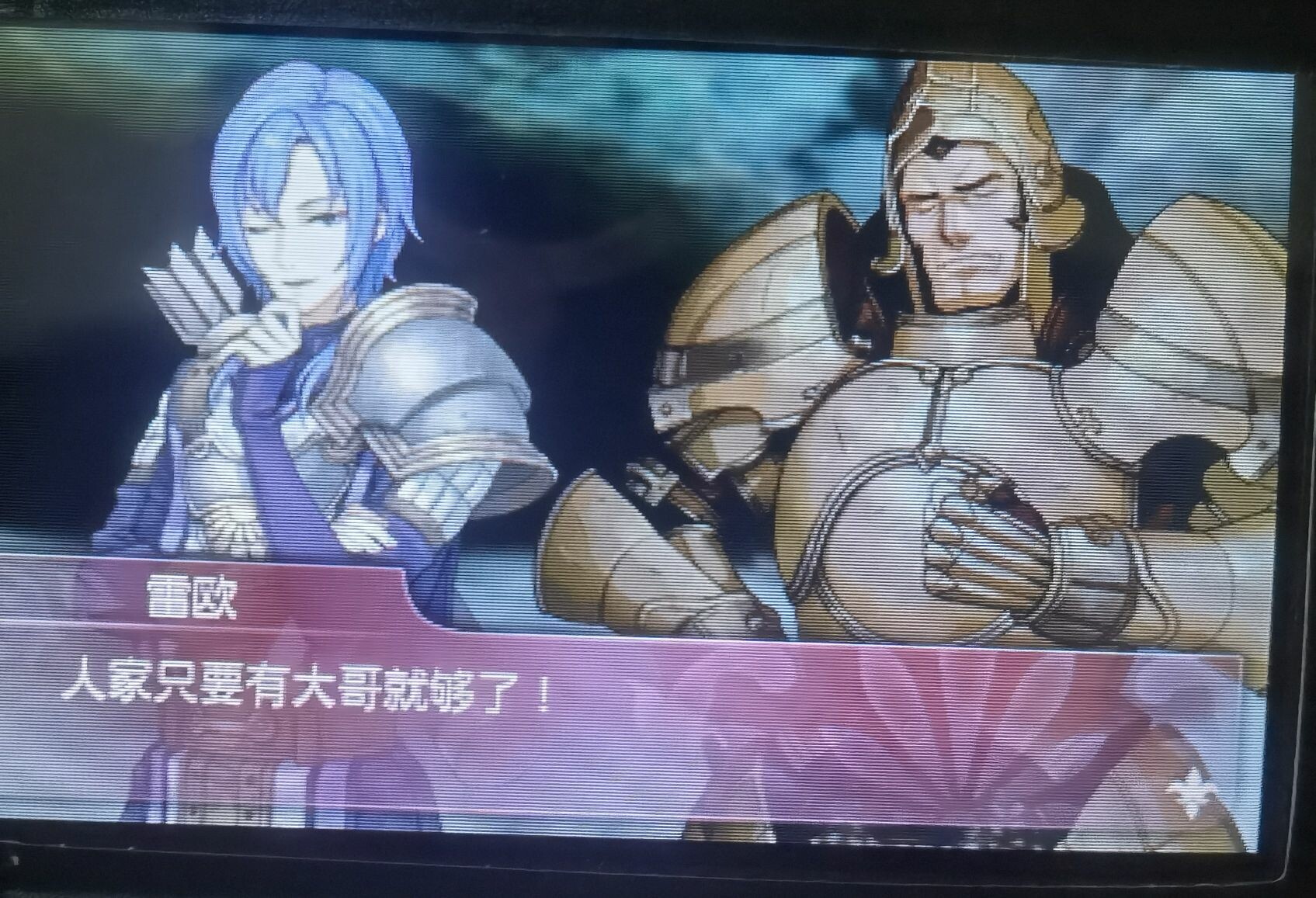我居然能在3ds看到天马三姐妹!!呜呜呜一些沉睡的记忆!!啊啊啊好帅!!这应该是亲哥吧!!呜呜呜哥你好帅啊啊啊!!男主女主终于重逢,却立刻因为观念踏上不同道路…嗯嗯,很火纹(?)