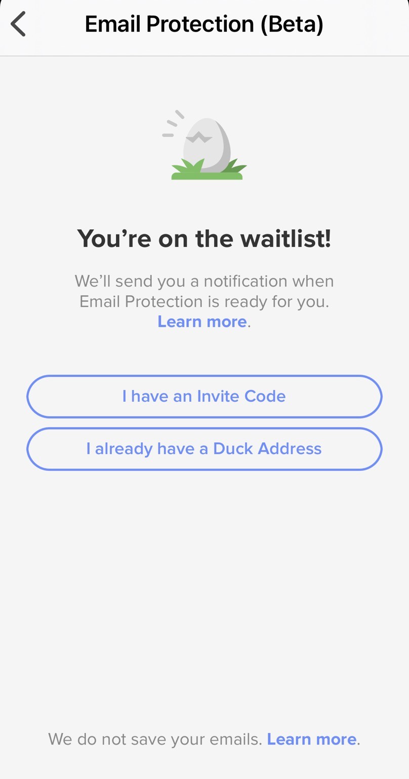 发现一个好东西!现在可以在duckduckgo app上申请duck.com邮箱,帮你过滤邮件追踪(等。总之看到是duckduckgo出品就知道申请不亏,我已经排上队了!有兴趣的大噶都可以早排队早享受:ablobcatwave: