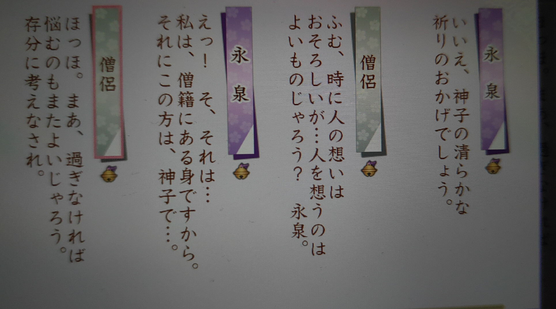 反而不能选右边那个啊 左边两个可以触发深一点的剧情对话和后续选择,右边会触发……永泉开心地给你传教……