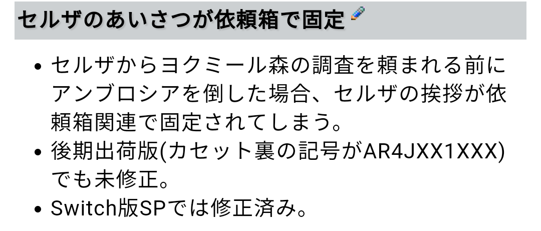 新的bug!!!这次是攻略站也提到过的,龙的打招呼台词变成只会叫你看委托箱。但这个bug报告里是发生在第一部的,我这边以前没问题,第三部接回来就变成这样了……也没办法,反正打招呼而已也不碍事