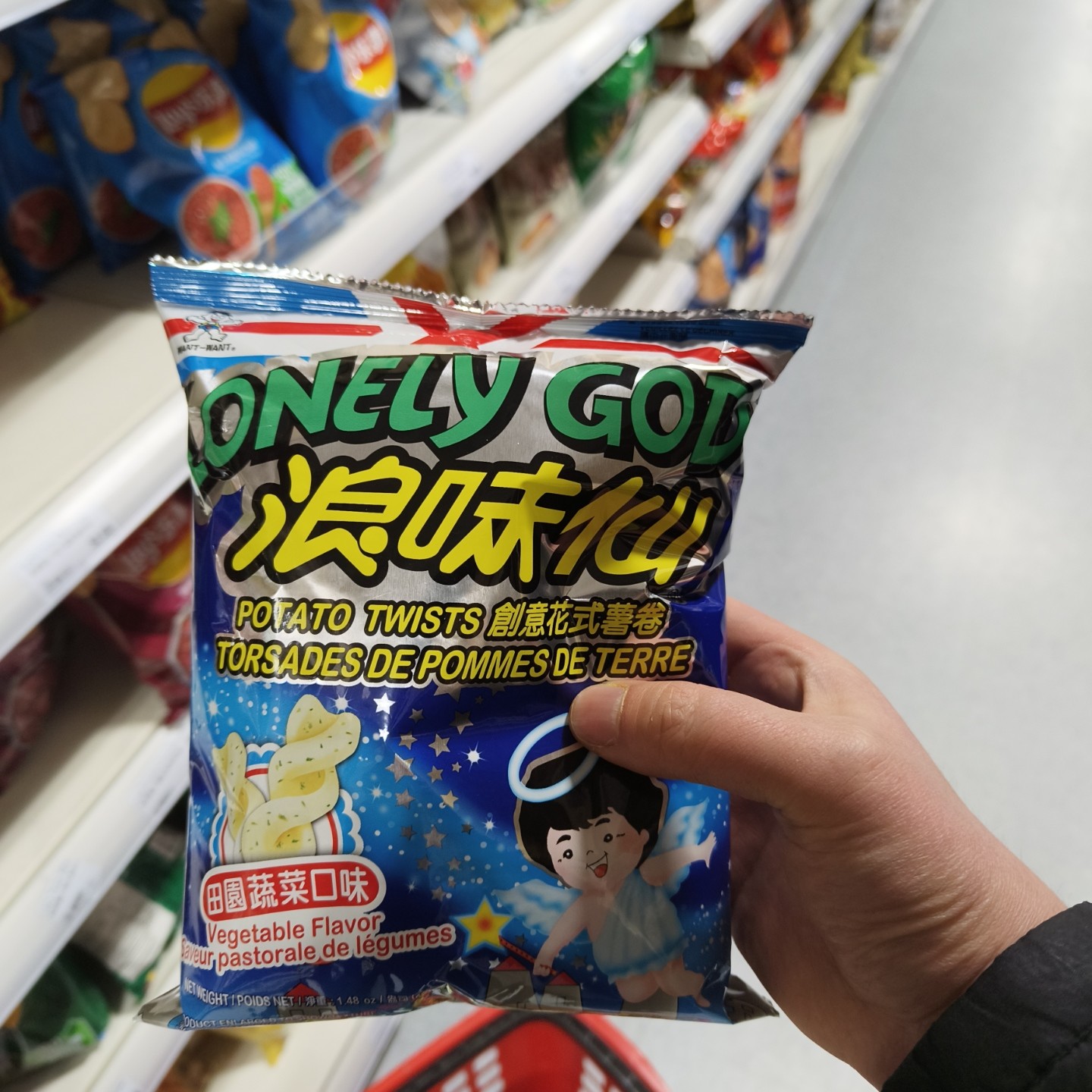 我:要去亚超了你去吗娃子:诶你去的话能不能帮我带包零食?叫“孤独的神明”。我:啥?娃子:孤独的神明(Lonely God)我:???那包装上就印着这俩词????娃子:对。我:好,好哦。我不记得有见过这玩意但是我帮你留意看看。娃子:你有哦,家里之前经常有的。我:家里还tm经常有???