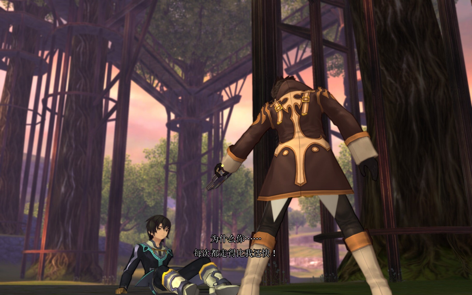 而沒了蜜拉就開始破防的還有艾爾文,這邊我姑且能理解他回艾倫比歐斯的大業破滅又發現白白犧牲了蜜拉不好過吧,但是聽信繆潔的慫恿就立刻過來殺隊友這個行為又是何意,真的很掉價……雖然你一邊打一邊罵裘德應該算是想要裘德振作起來吧,但是你最後都打到蕾雅身上又是為什麼啊!!蕾雅到底做錯了什麼啊!!之前在支線裡期待值拉得還很高,越高摔得越慘,接下來這個友情破顏拳+打架(我還因為中了魅惑打輸了,幹,兄弟你上什麼不好給我上魅惑)真是一點魅力都沒有。裘德頹廢了那麼久,被蕾雅一路拉著跑,一通精緻走位之後從樹上摔下去閃回了一下蜜拉的事情就突然醒悟過來,還能反過來對艾爾文開嘴炮,重點是艾爾文還說了這句「為什麼你每次都走得比我還快」,媽呀真給我看笑了你們也算是一個願打一個願挨了…………………………謎語了大半個遊戲塑造的穩重神秘的傭兵形象就這樣因為這一句話化成了泡影…………………………