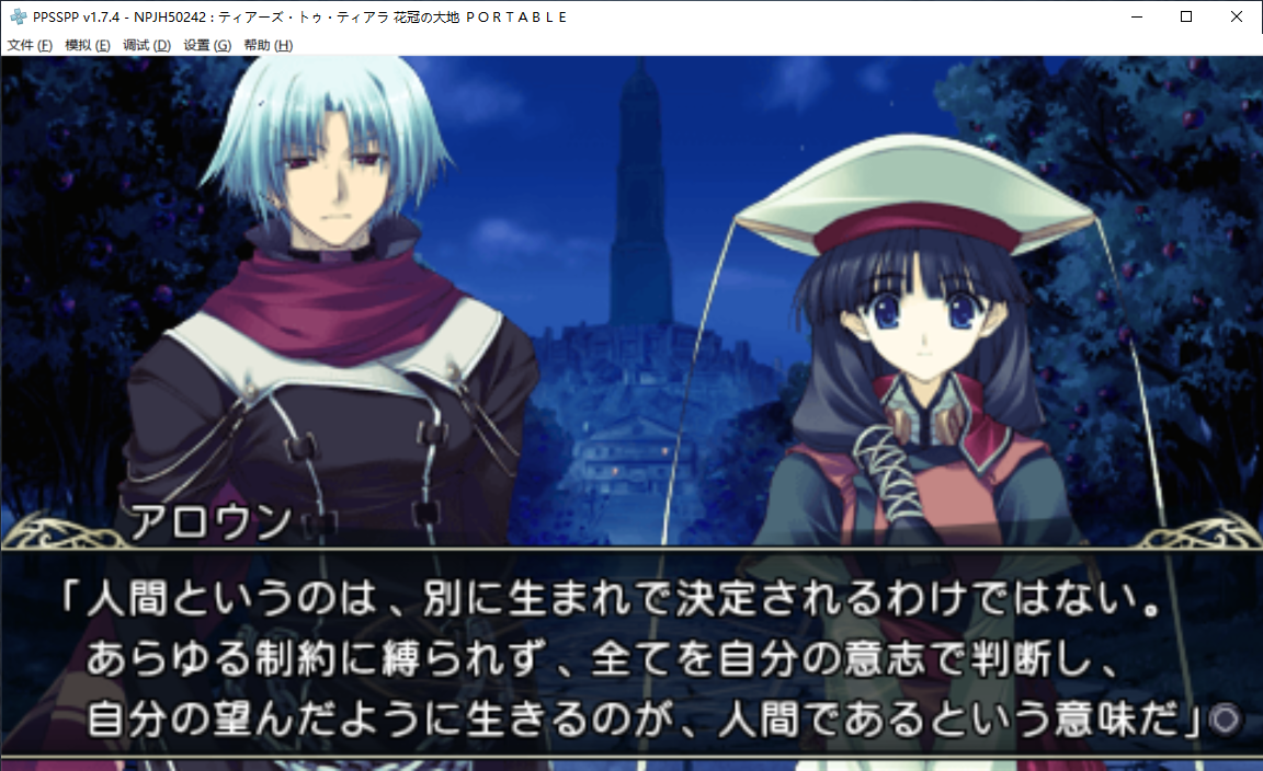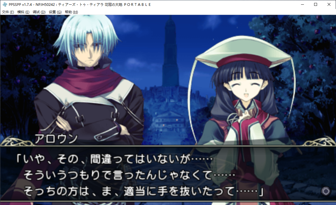 是谁2026年还在古老的GAL游戏里找基佬啊!但是叶子社的男人真的写得很对我胃口所以时至今日又打开了慕名已久的老游戏! 虽然pc和psp版的资源都有了不过看了看画风,妹子两边都很可爱但是男人显然重置后好看得多于是果断选了psp,顺便发现重置新增了不少剧情,战斗方式也改得比pc版简单多了,pc版那个自动战斗我真玩不来………… 总之开个串,提亚拉之泪。